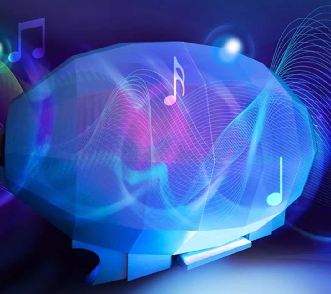 Het geluidssysteem van Harmonic Egg® werd bestudeerd en onderzocht met geluids -en lichtingenieurs.